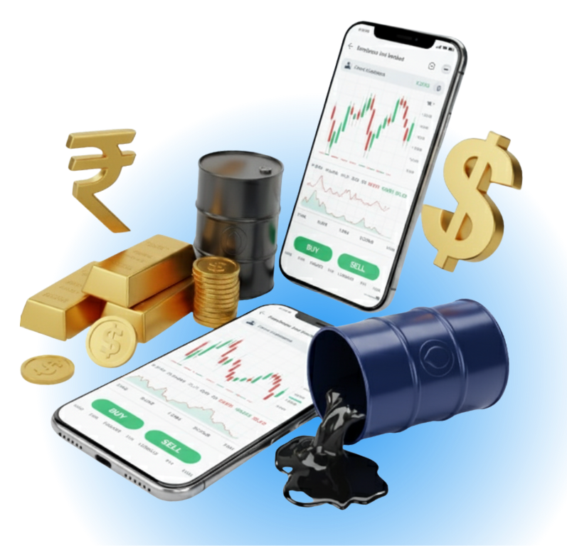 Trade India’s top commodities — Gold, Silver, Crude Oil, Natural Gas, and more. Benefit from deep liquidity, sharp pricing, and lightning-fast order placement.